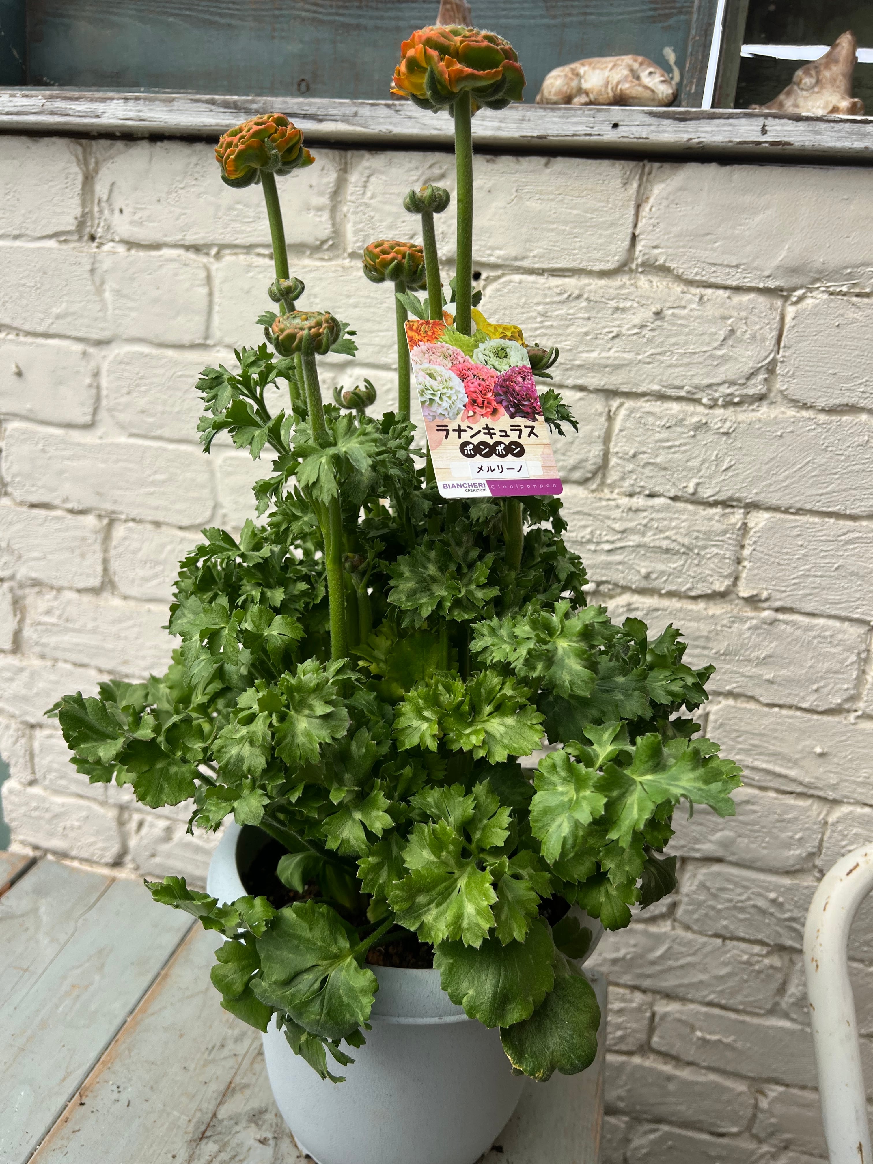 6号鉢の大株ラナンキュラスポンポン